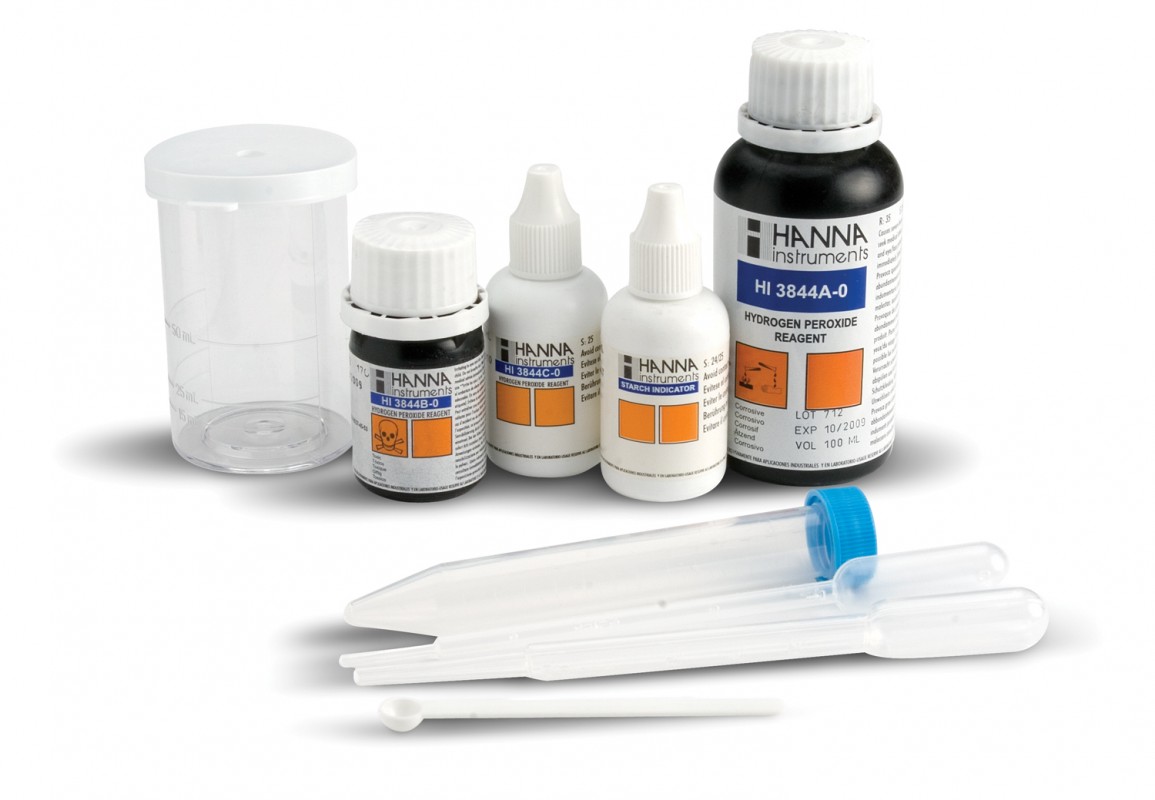Chemisches Testkit zur Bestimmung von Wasserstoffperoxid im Bereich 0,00 bis 2,00 mg/l / 0,0 bis 10,0 mg/l (ppm).