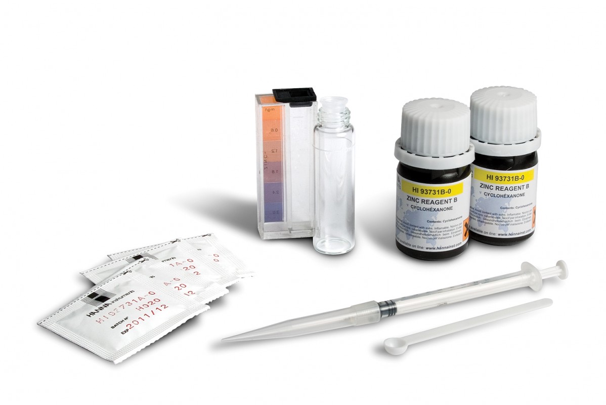 Chemischer Testkit zur Bestimmung von Zink im Bereich 0 bis 3.0 mg/l (ppm).
