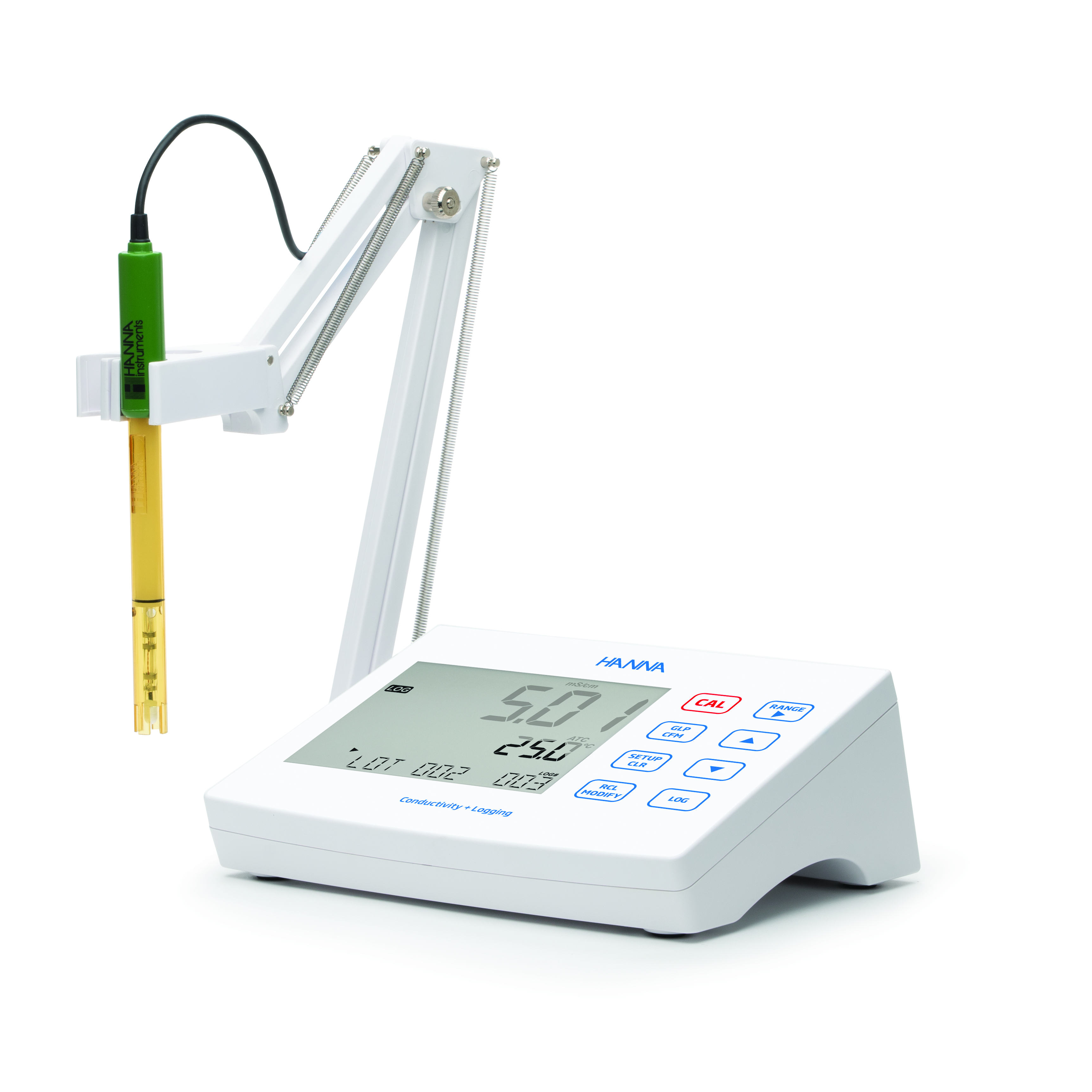 HI2631 ermöglicht schnelle, genaue Messungen unter Verwendung der digitalen Leitfähigkeitselektrode HI763100 von Hanna Instruments® mit integriertem Temperatursensor. Die Sonde verfügt über eine eindeutige Seriennummer und wird nach dem