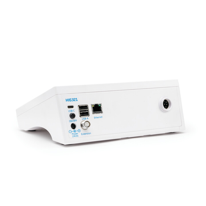 Lieferinformation: HI6321 wird geliefert mit: HI7631233 EC-Elektrode; HI764060 Elektrodenhalter; Kapillarpipette; 24-V-DC Netzteil, USB-C auf USB-A Kabel; Kurzanleitung, Gerätezertifikat.