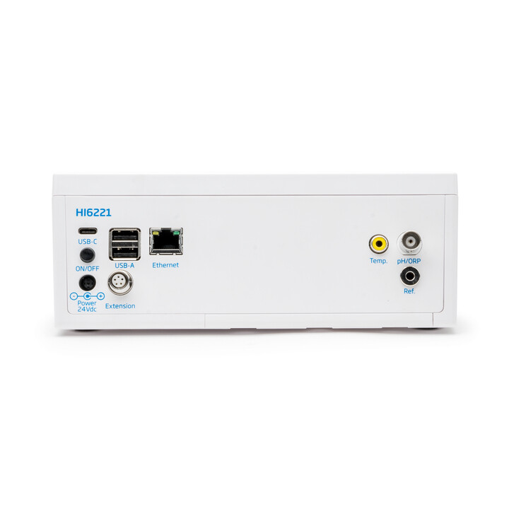 Lieferinformation: HI6221 wird geliefert mit: HI1131B pH-Elektrode; HI7662-TW Temperaturfühler; pH Kalibrier-Starterset, bestehend aus: pH 4,01 Puffer (2 x 20-mL-Beutel); pH 7,01 Puffer (4 x 20-mL-Beutel); pH 10,01 Puffer (2 x 20-mL-Beutel); HI700601 Elektrodenreinigungslösung (2 x 20-mL-Beutel); HI7082 3,5M KCl Elektrolyt (30 mL); HI764060 Elektrodenhalter; Kapillarpipette; 24-V-DC Netzteil, USB-C auf USB-A Kabel; Kurzanleitung, Gerätezertifikat